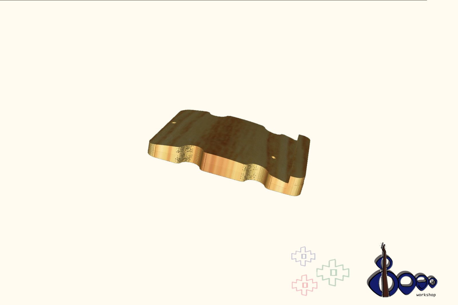 Double faced thumb rest, with shape that fits between pickups with 1 mm distance. Default thickness is 10 mm but can be adjusted based of customer needs. Holes aligned with pickguard screw holes and mounting on existing pickguard holes.