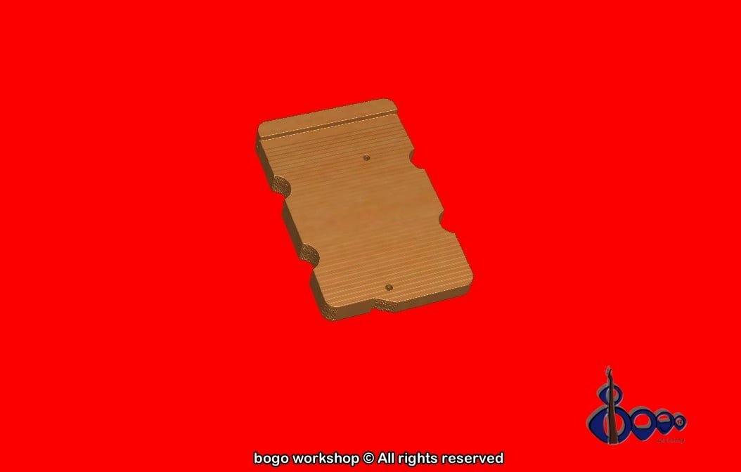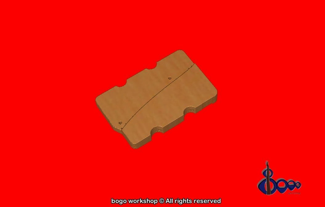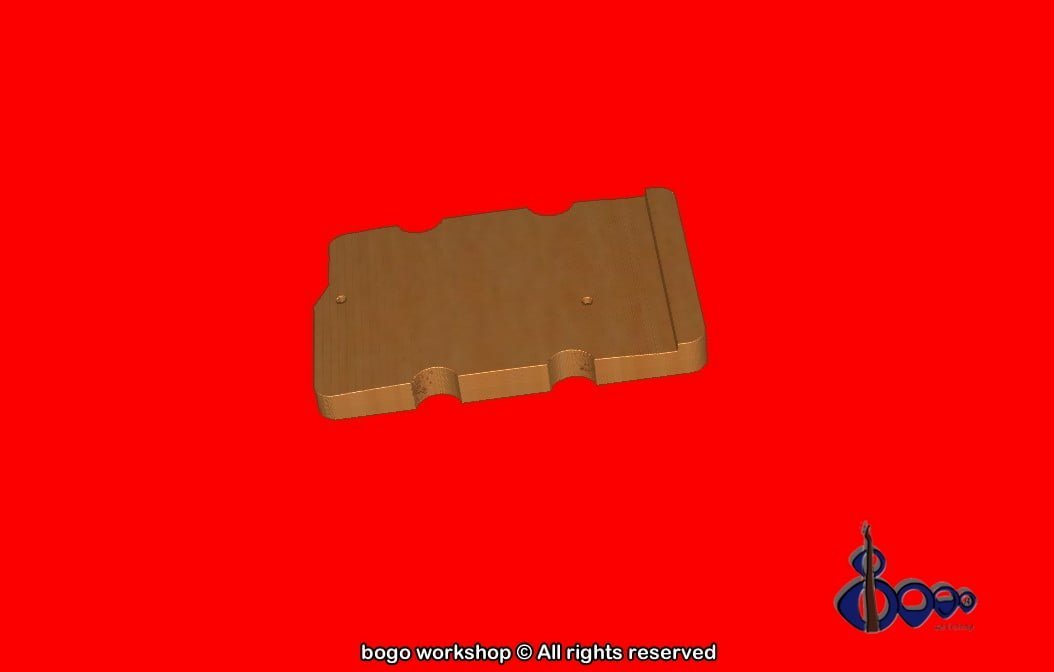 Double faced bass ramp, with shape that fits between pickups with 0.25-0.5 mm distance. Default thickness is 9-10 mm but can be adjusted based of customer needs and pickup height. Holes aligned with pickguard screw holes and mounting on existing pickguard holes.