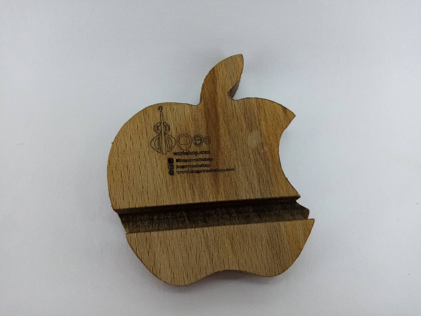 Discover a unique and durable Apple  mobile phone stand made of high-quality wood. Enhance your phone experience with this stable and stylish accessory, designed in the iconic Apple shape.