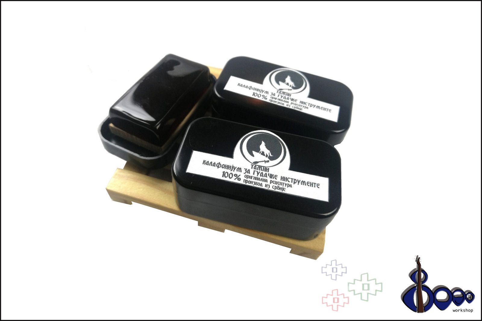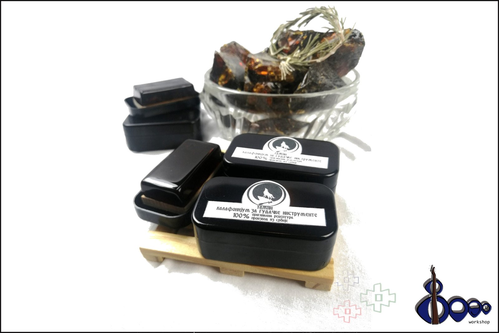 Our dark winter rosin is carefully crafted according to a special recipe, combining pure rosin with beeswax and vegetable oil. This unique blend prevents the rosin from becoming brittle or generating excessive dust. Additionally, it exhibits excellent resilience to shocks and low temperatures, guaranteeing long-lasting performance.