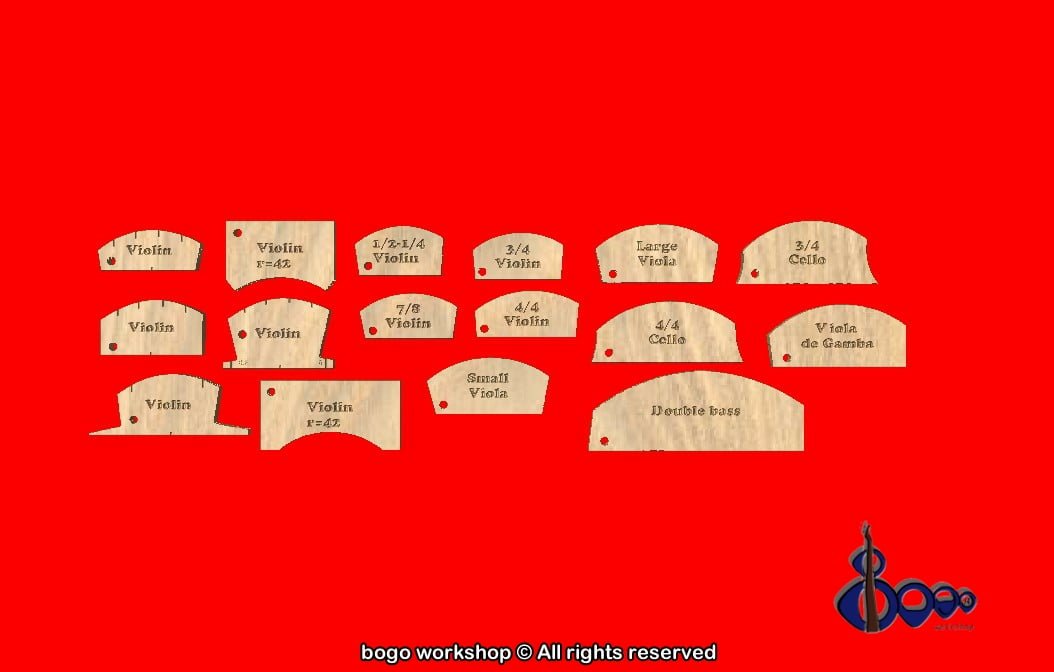 - Additionally, Bridge/ Fingerboard Template set for violin, viola, cello and double bass can be engraved with any pattern using laser engraving or milling, if preferred.